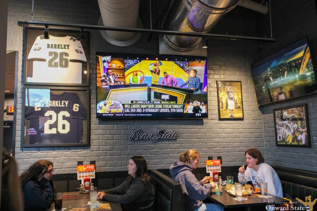 The restaurant concept centers on creating a social sports-viewing environment. Interiors typically feature dark tones, bold yellow and black branding, and numerous televisions broadcasting live games.